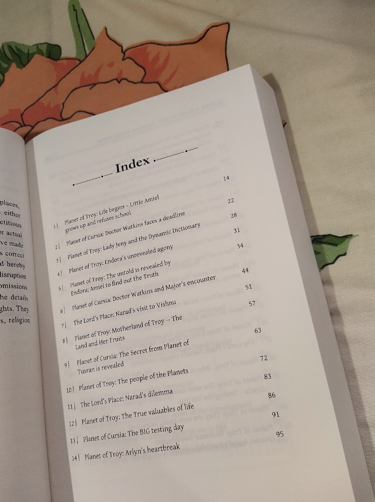 The cover is so enigmatic . I liked the conversations between Amiel and his mom and amiel and Doctor Watkins. The sudden twists and the secrets unfolding on why Cusians took over tushans and the purpose unfolding later on.